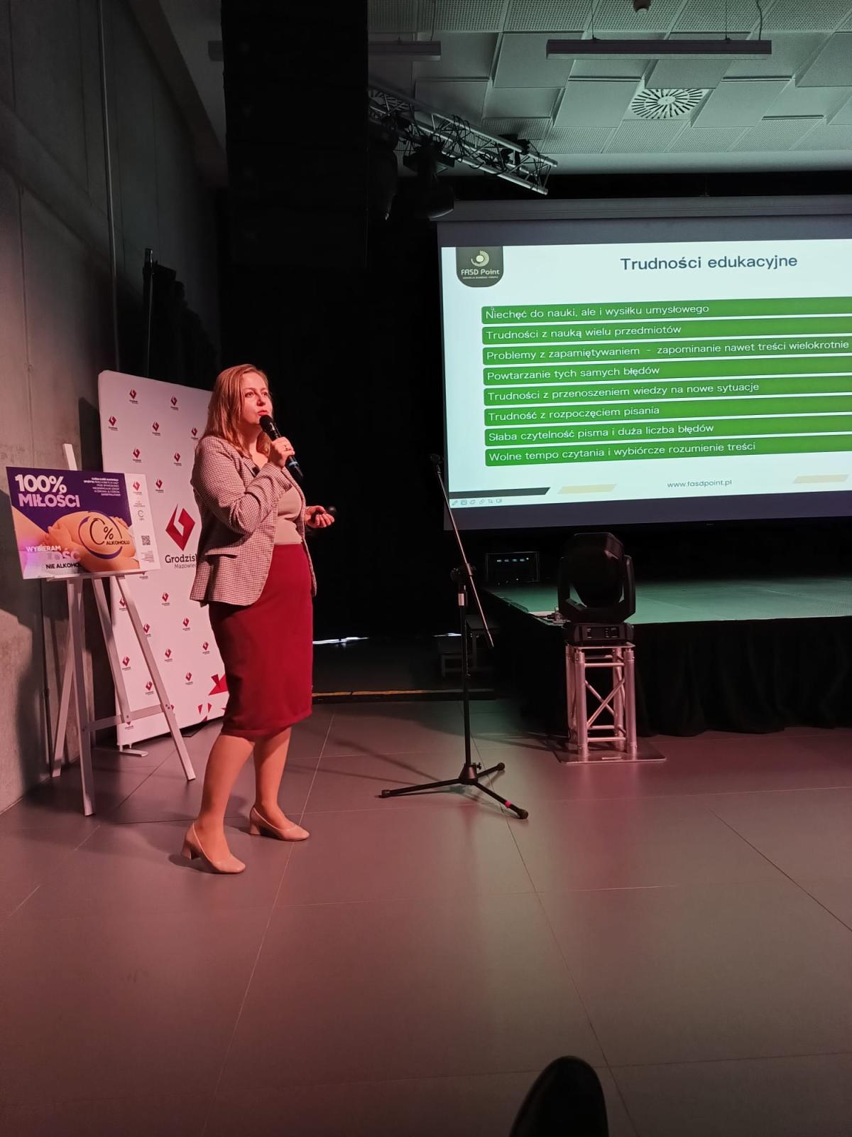 - Sylwia Ściegienko, główny psycholog, diagnosta FASD Point, prezentując funkcjonowanie psychologiczne dzieci z FASD oraz wyzwania w edukacji i relacjach społecznych,