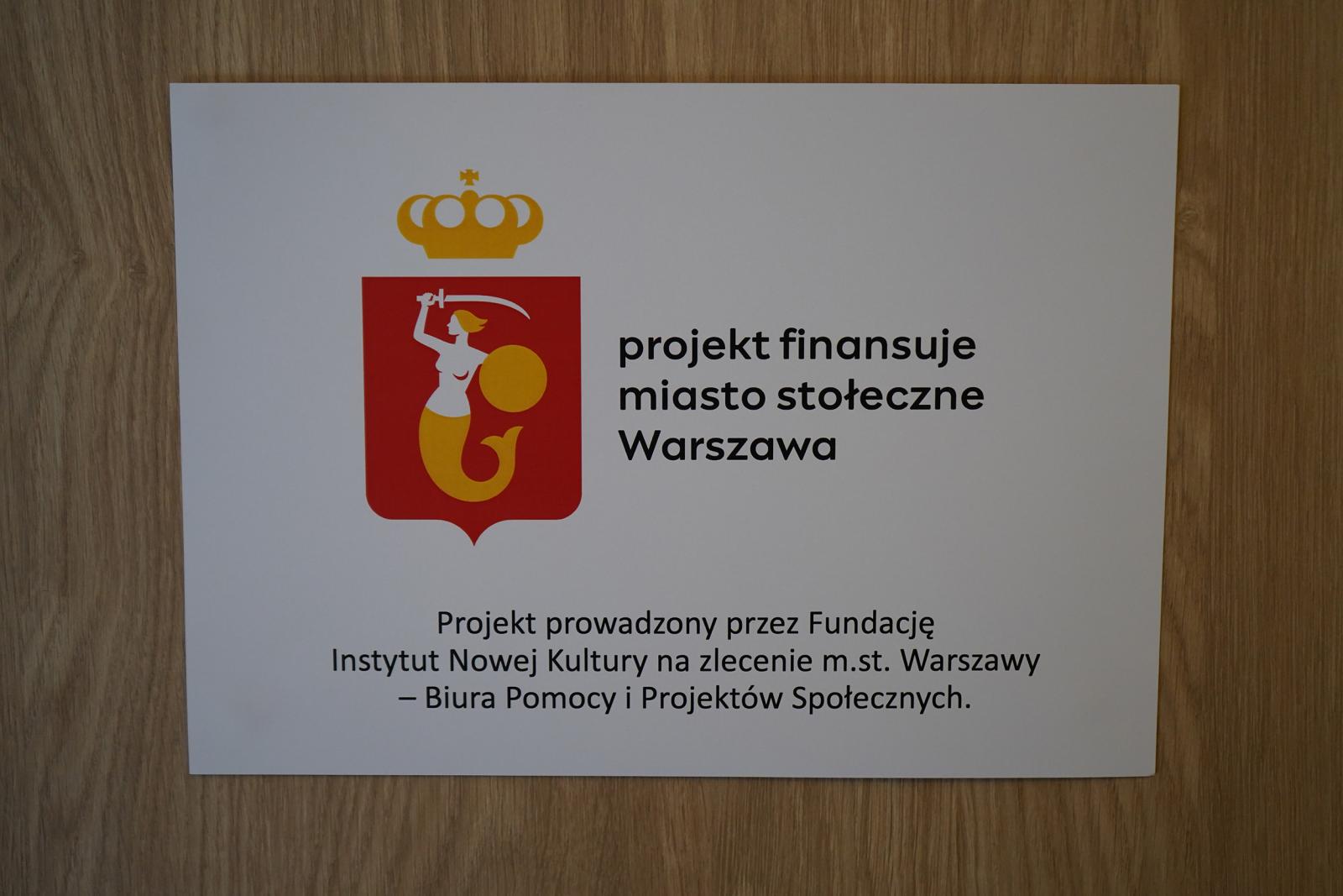 Projekt realizuje Fundacja Instytut Nowej Kultury na zlecenie m.st. Warszawy – Biura Pomocy i Projektów Społecznych.